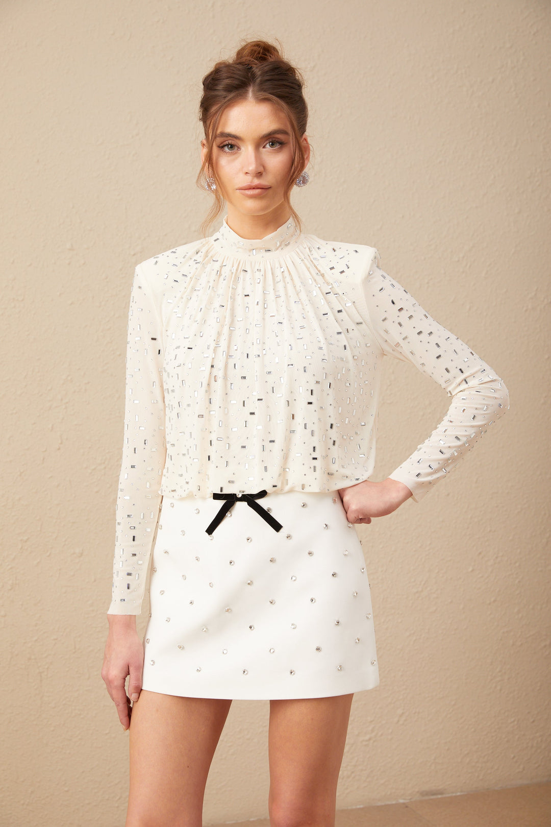 Sevgililer Günü Kristal Süslemeli Bluz Bej