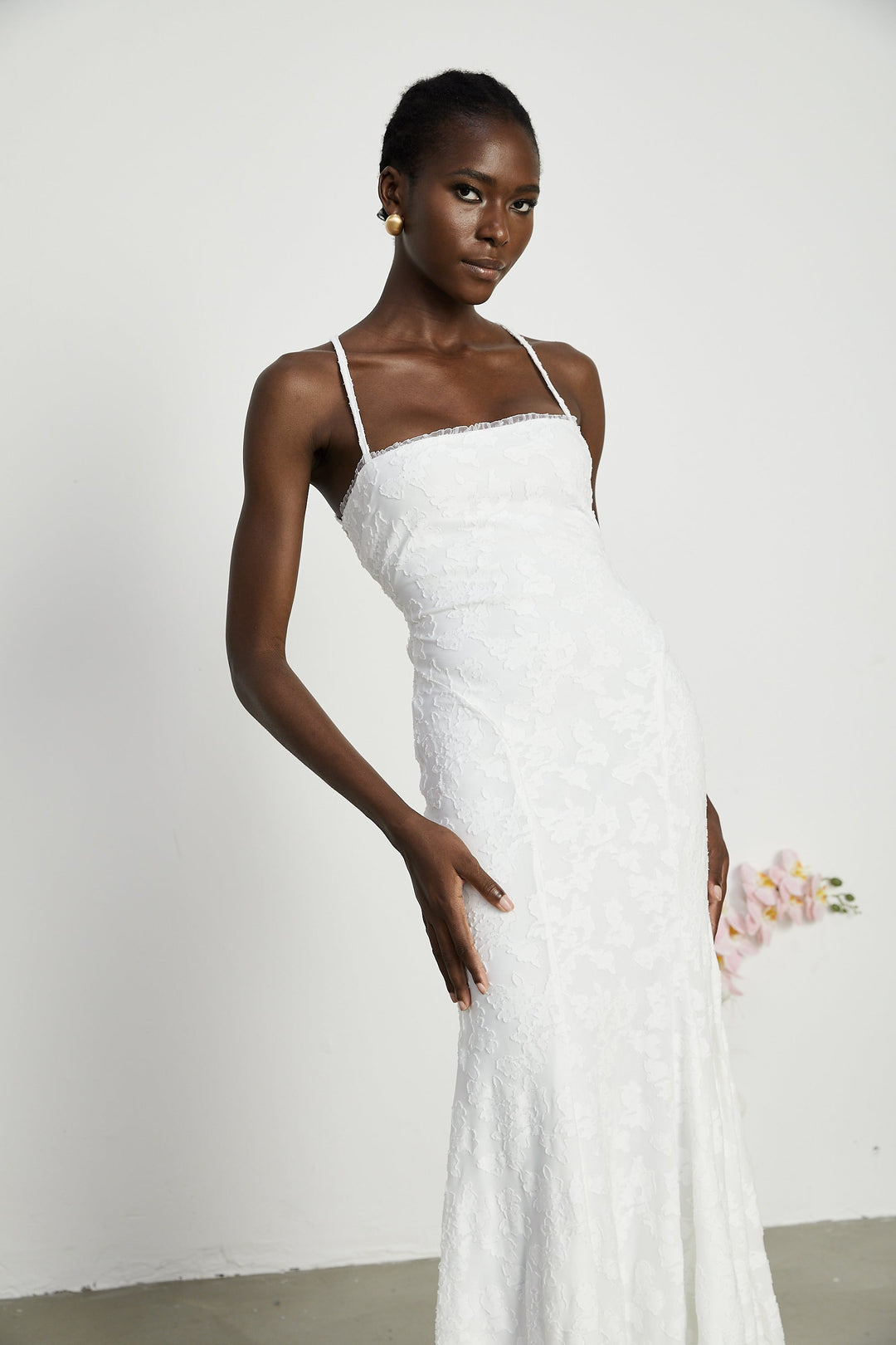Rosalie Bağcıklı Kloş Maksi Elbise Beyaz