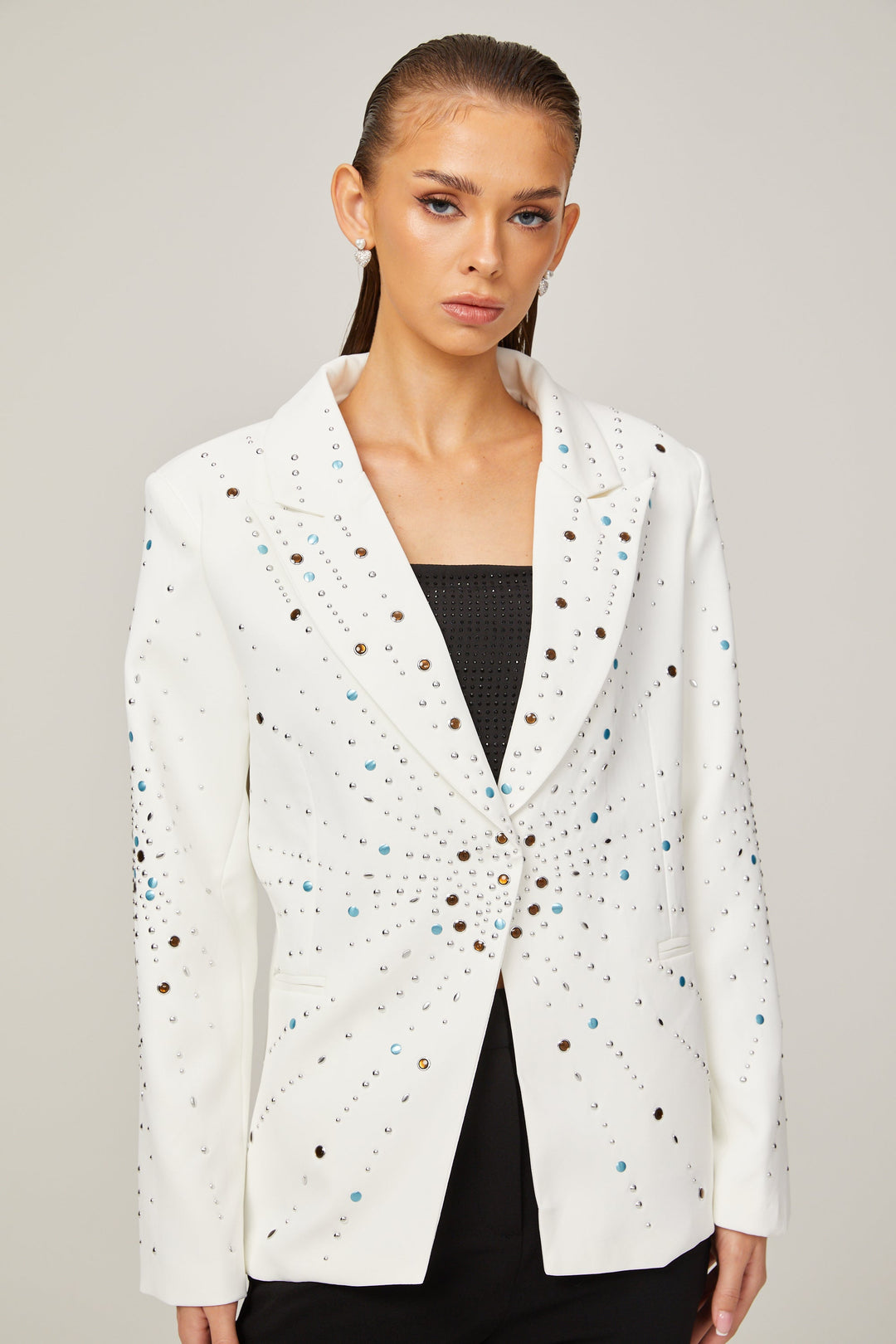 Jocelyne Beyaz Elmas Taklidi Süslemeli Blazer Ceket Beyaz