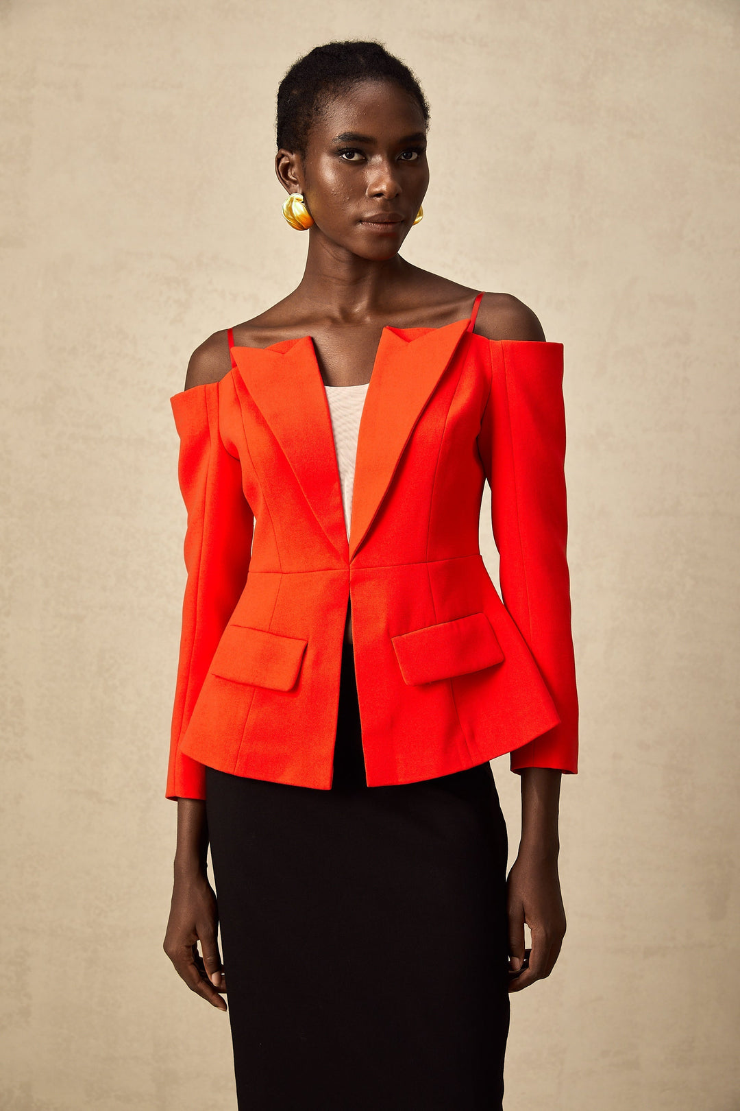 İnaya Kırmızı Omuzları Açık Blazer Üst Kırmızı