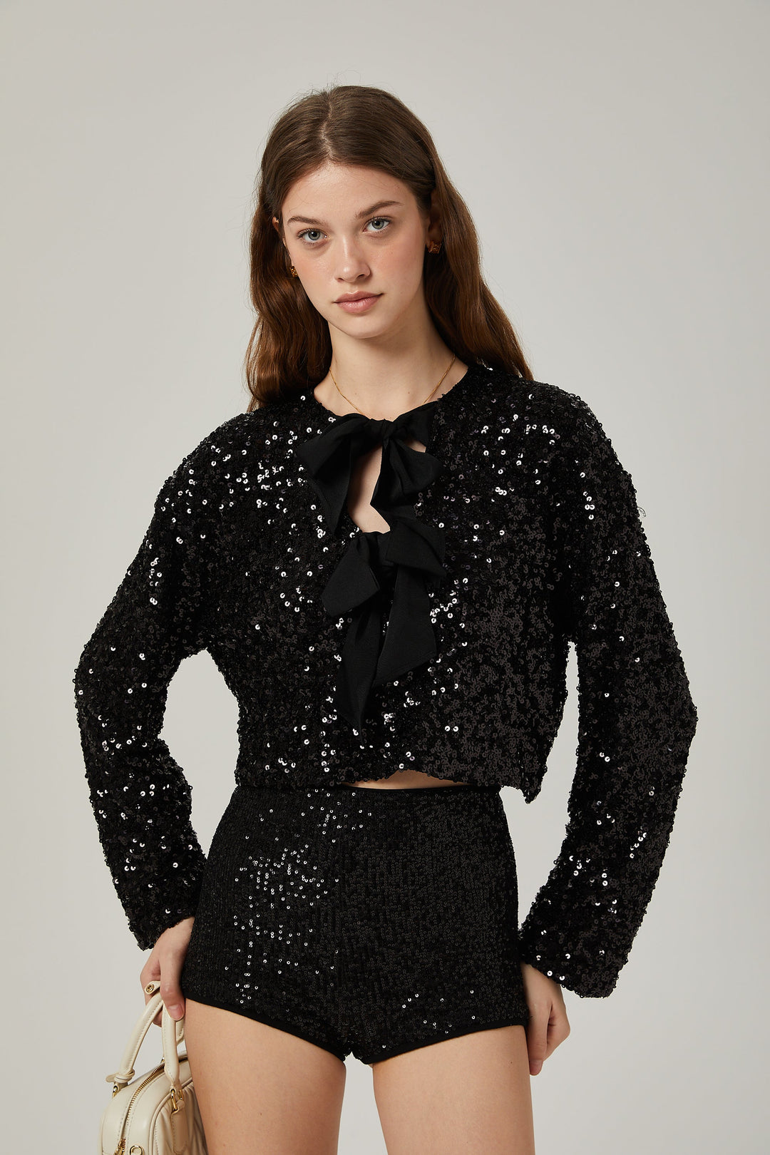Nerissa Önü Bağcıklı Payetli Ceket Siyah