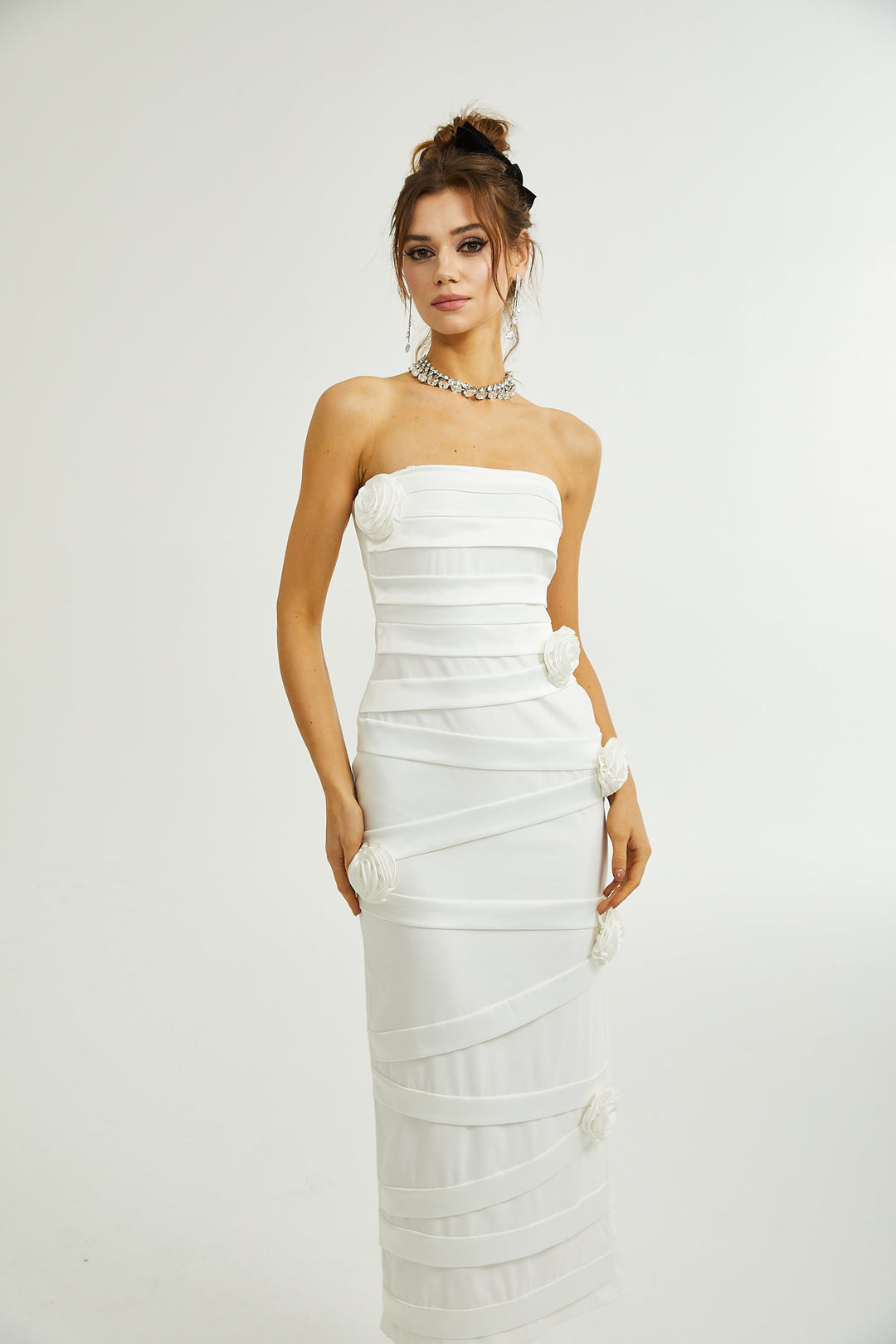• Model 1.76 m boyunda ve S beden giyiyor • Beyaz • Kolsuz • Omuzdan aşağı • Çiçek aplike • Bel sıkılaştırıcı tasarım • Arka fermuarlı • Midi boy • Kompozisyon: %95 Polyester, %5 Spandex Ara bedenler bir beden büyük tercih etmelidir. Sipariş üzerine,...- 5,999.99TL