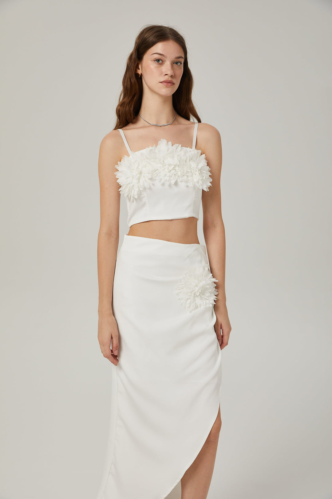 Angélique Suni Çiçekli Üst Ve Etek Uyumlu Set Beyaz