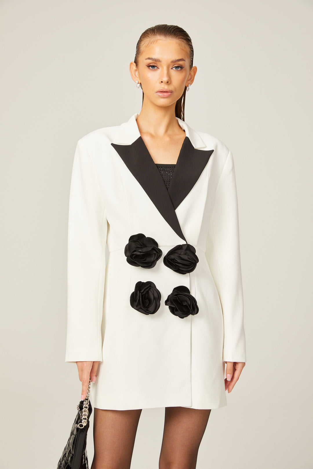 Axelle Suni Çiçekli Kontrast Renkli Blazer Elbise Beyaz