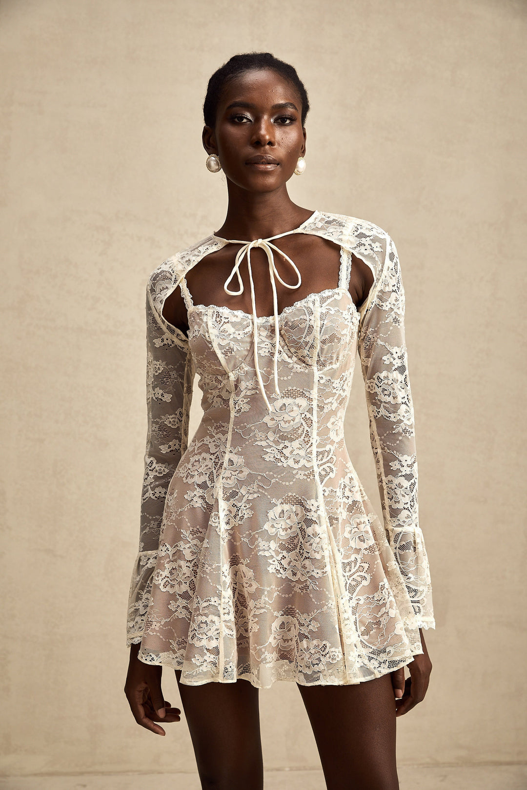 Armelle Beyaz Çiçekli Dantel Korse Mini Elbise Beyaz