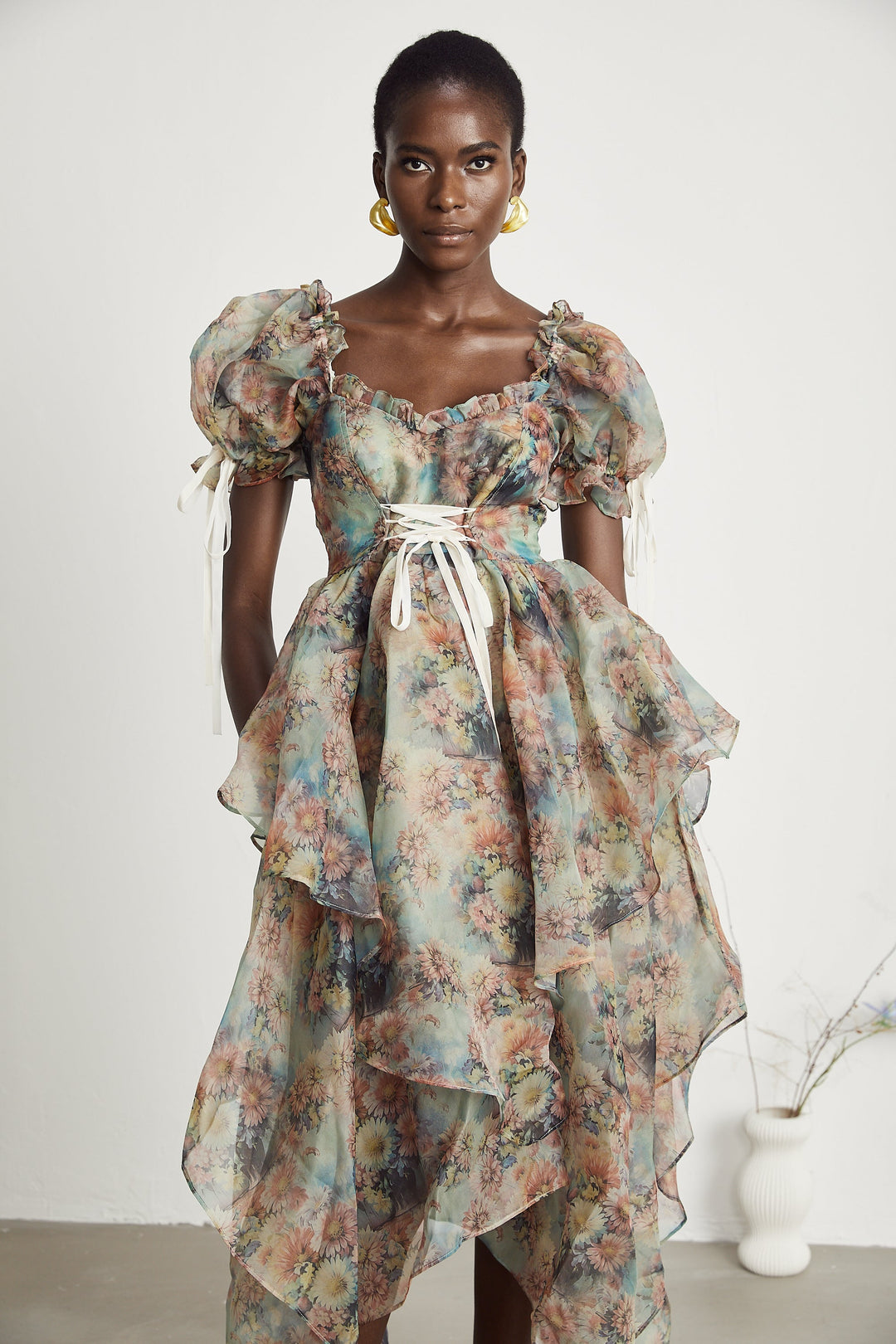 • Model 1.77 m boyunda ve M beden giyiyor • Kahverengi/çok renkli • Kısa puf kollu • Kare boyun • Çiçek desenli • Bel kısmı sıkılmış • Bağcıklı detaylar • Asimetrik etek ucu • Tül tasarım • Midi boy • Arka fermuarlı • Kompozisyon:...- 4,499.99TL