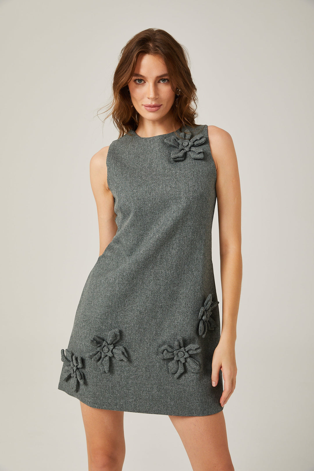 Viviane Gri Çiçekli Kolsuz Mini Elbise