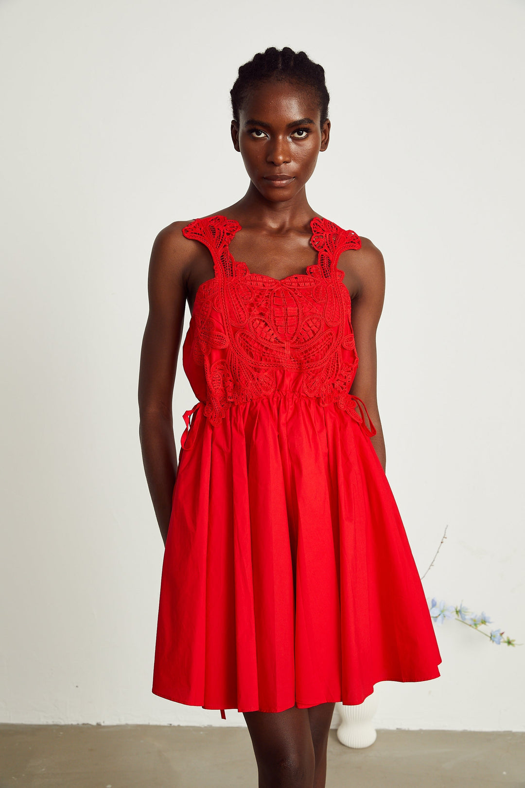 Wanda Kırmızı Dantel İşlemeli Mini Elbise Kırmızı