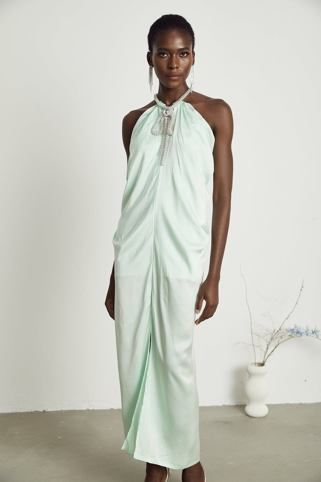 Gisèle Boyundan Bağlamalı Kristal Süslemeli Midi Elbise Yeşil