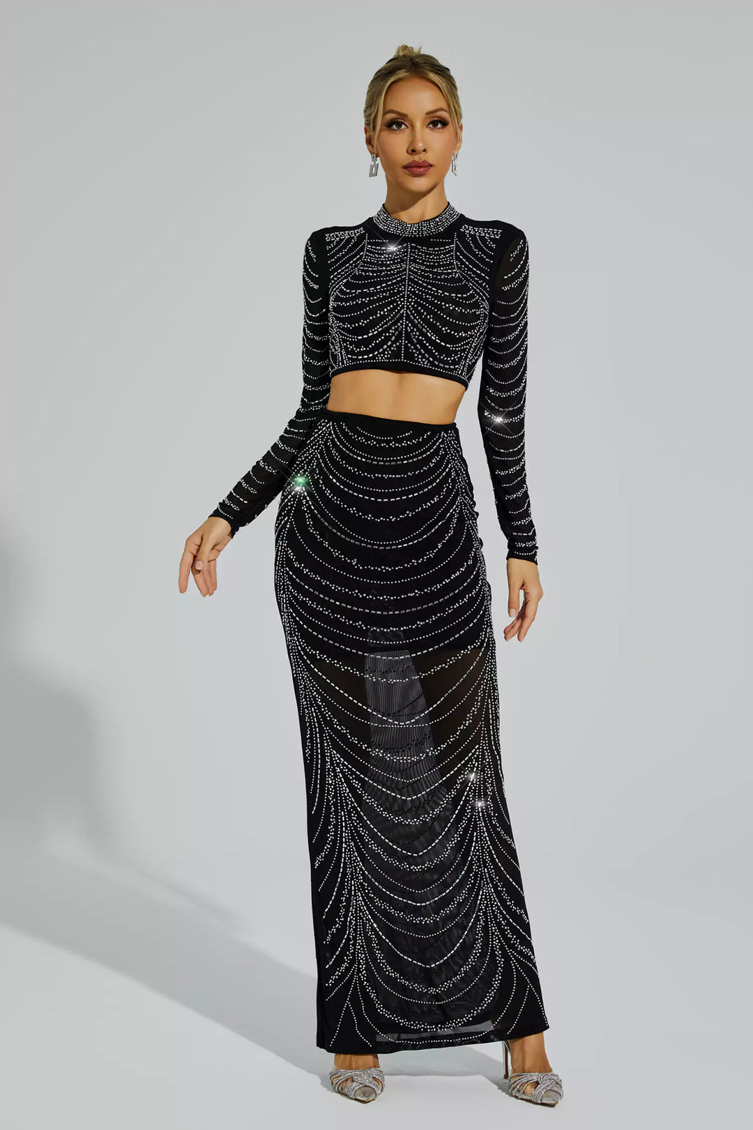 Modelin boyu 1.70 m ve S beden giyiyor. Üst Boyu: Yaklaşık 42 cm Etek Boyu: Yaklaşık 104 cm Simona Siyah Sıcak Elmas Baskı Seti ile stilinizi yükseltin. Bu iki parçalı takım, etkileyici sıcak elmas baskılı, vücuda oturan yüksek bel bir eteğe sahiptir. Yırtmaç, çekicilik...- 5,999.99TL