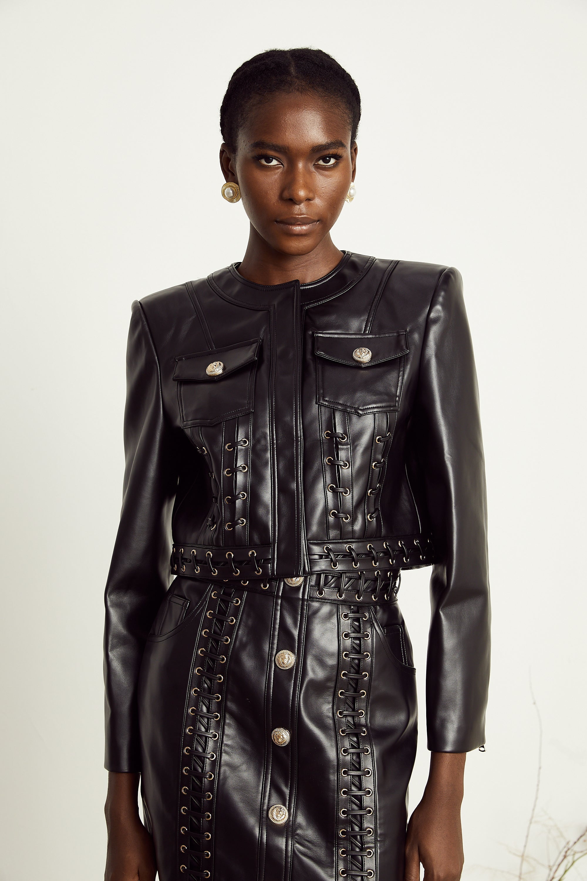 • Kabartmalı altın tonlu düğmeler