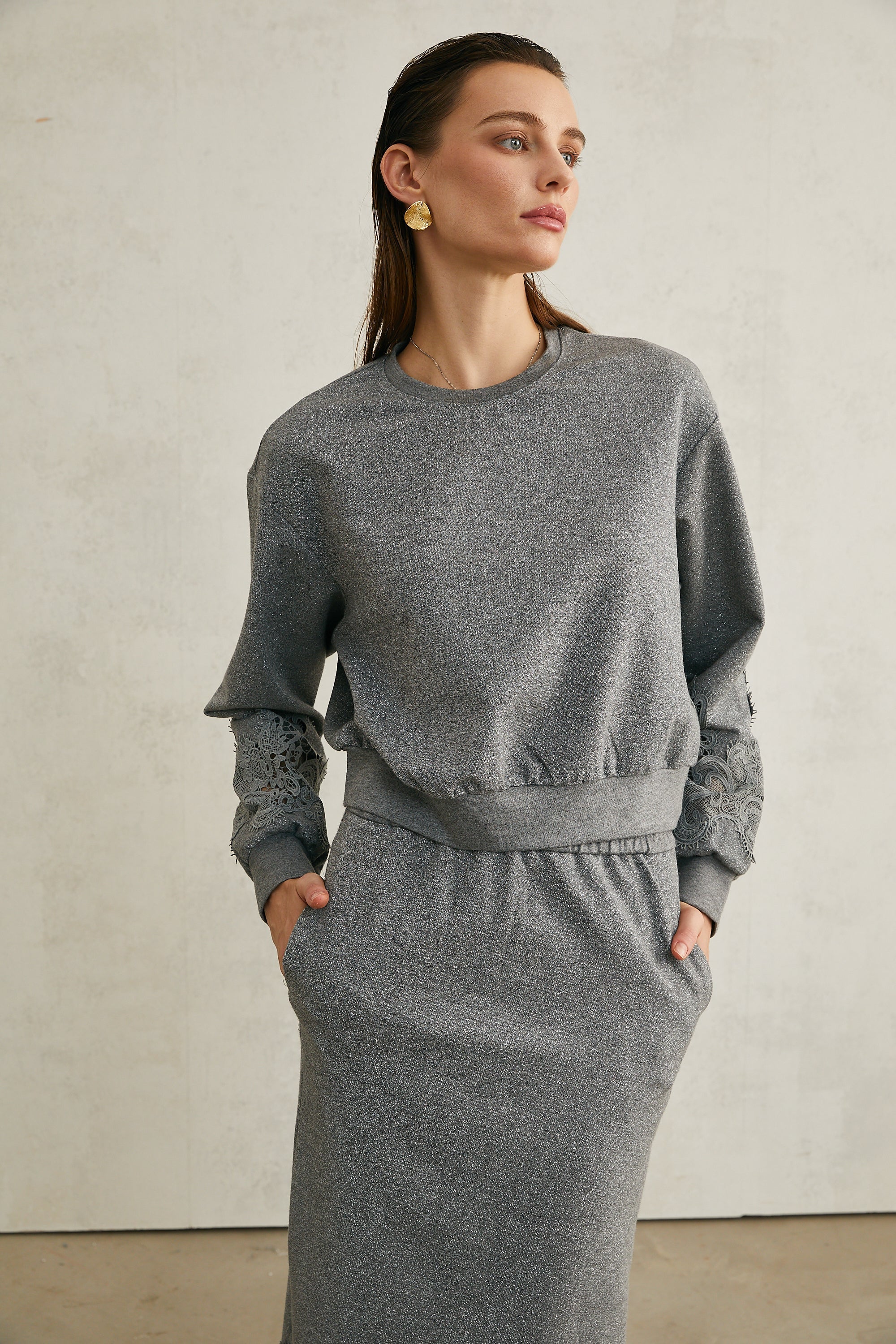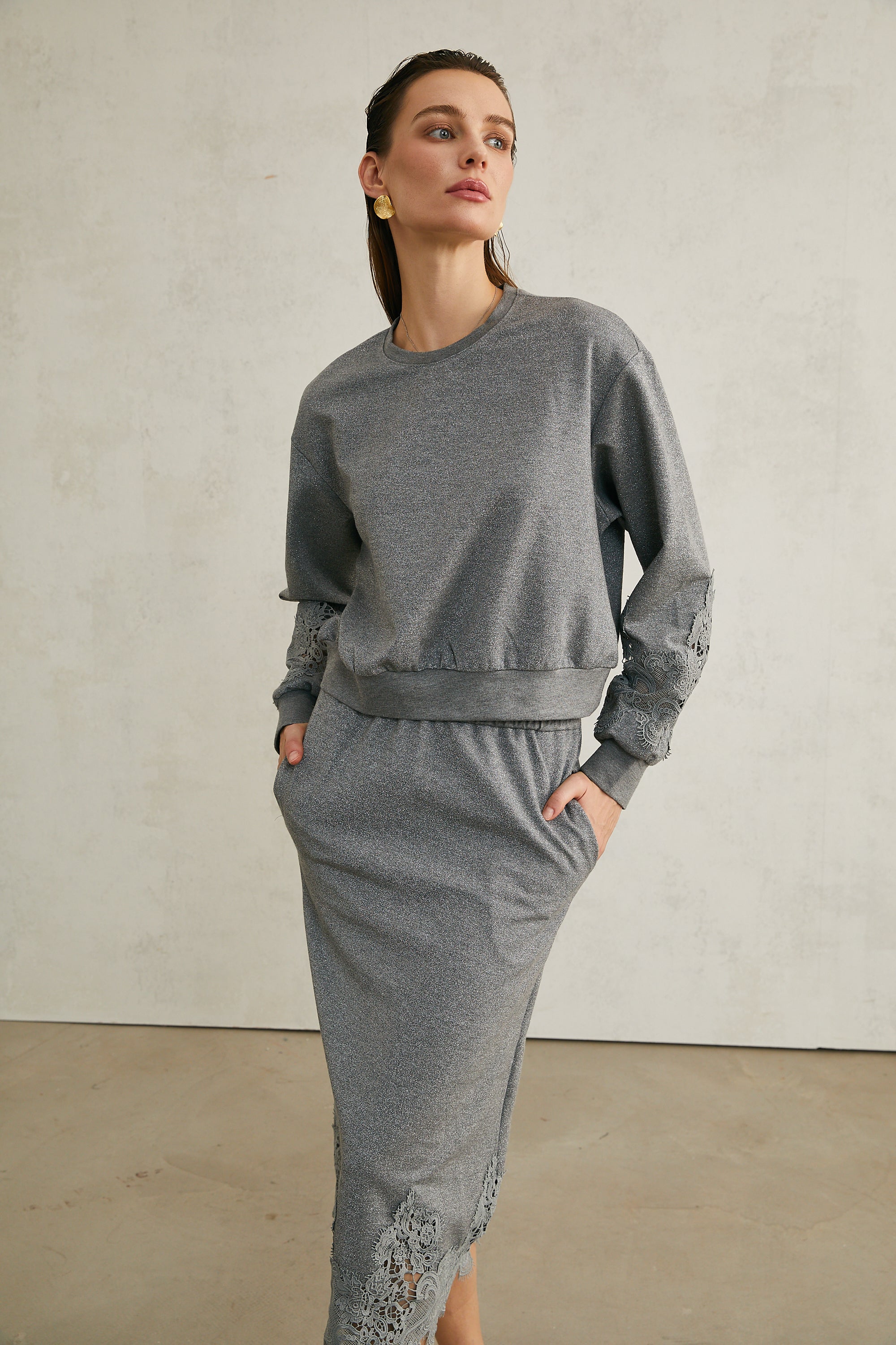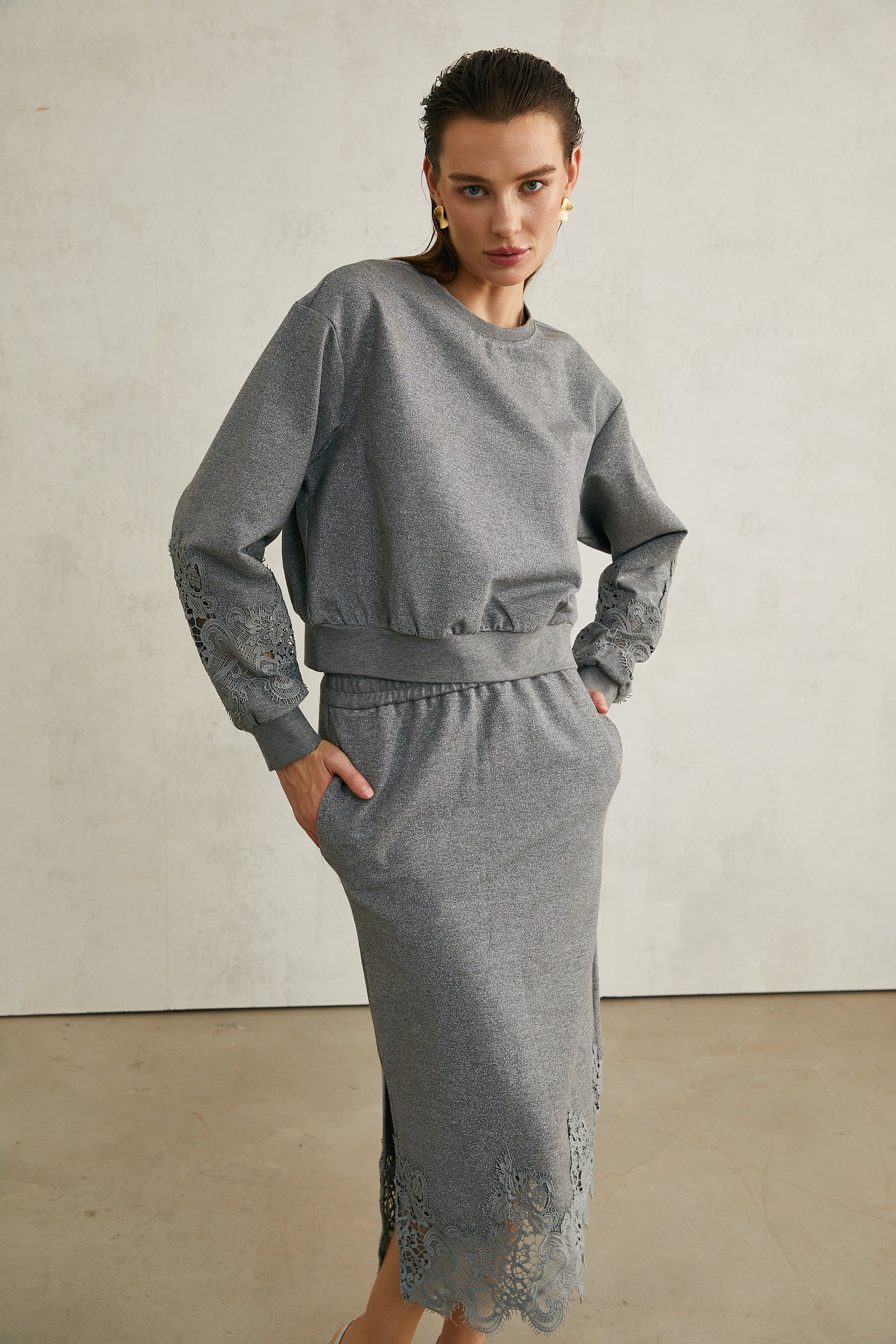 Model 1.78 m boyunda ve M beden giyiyor