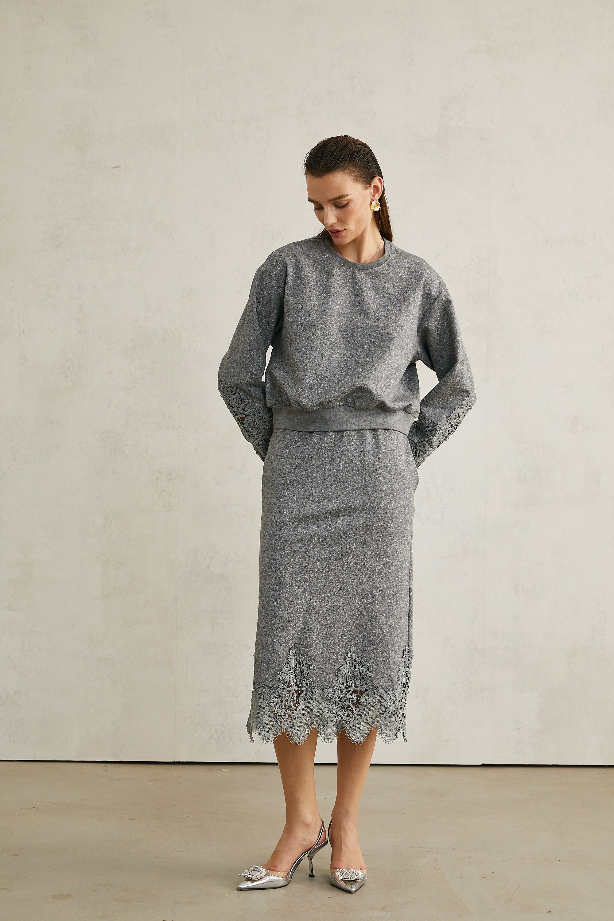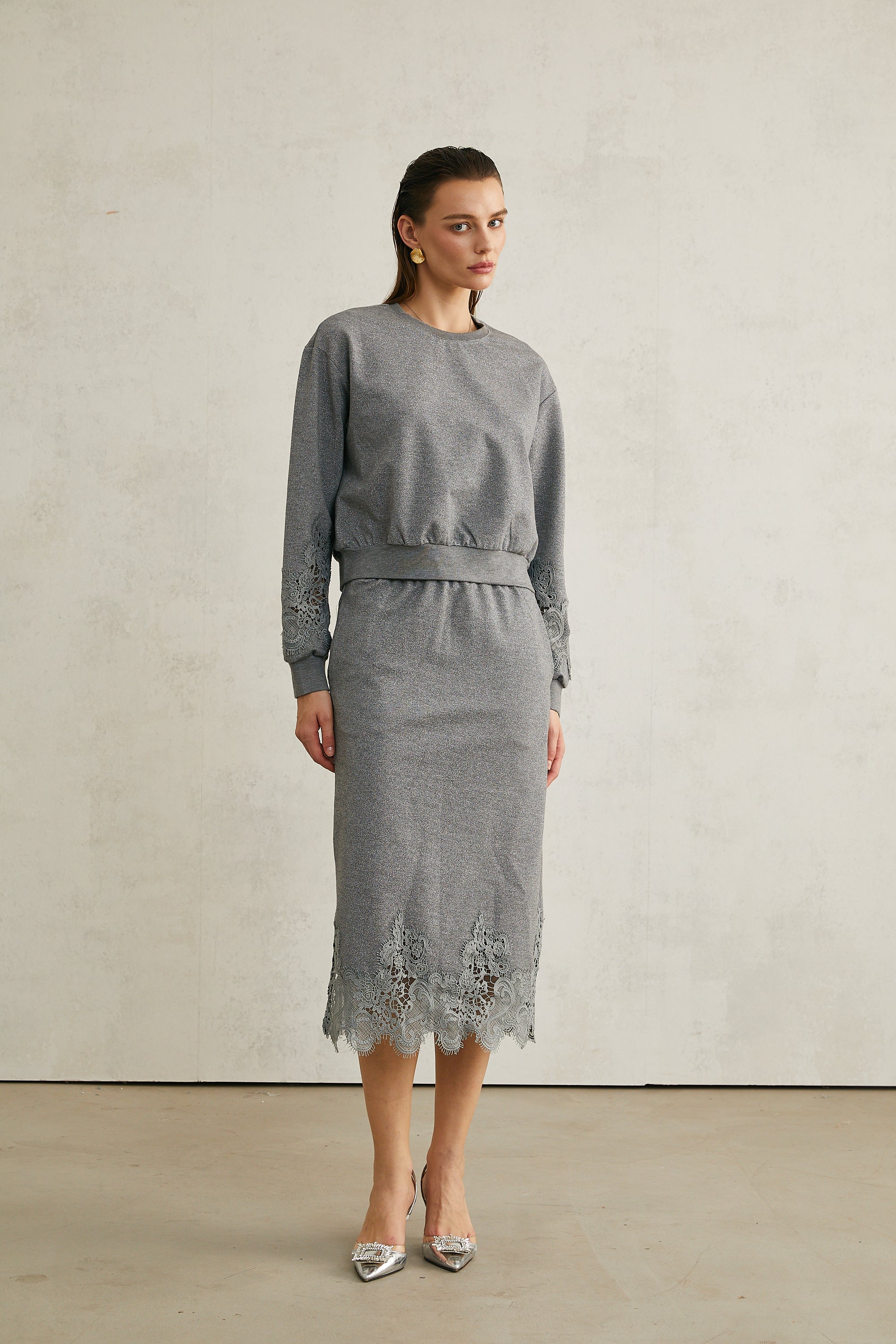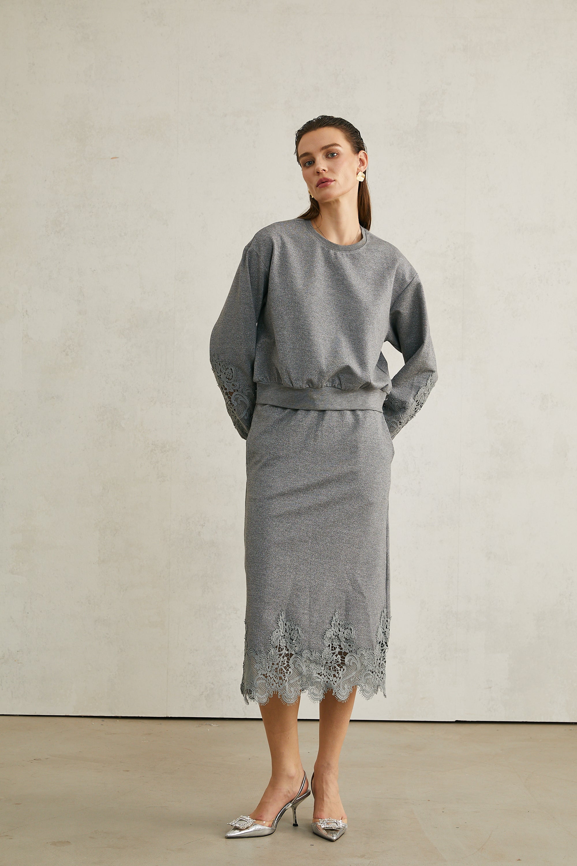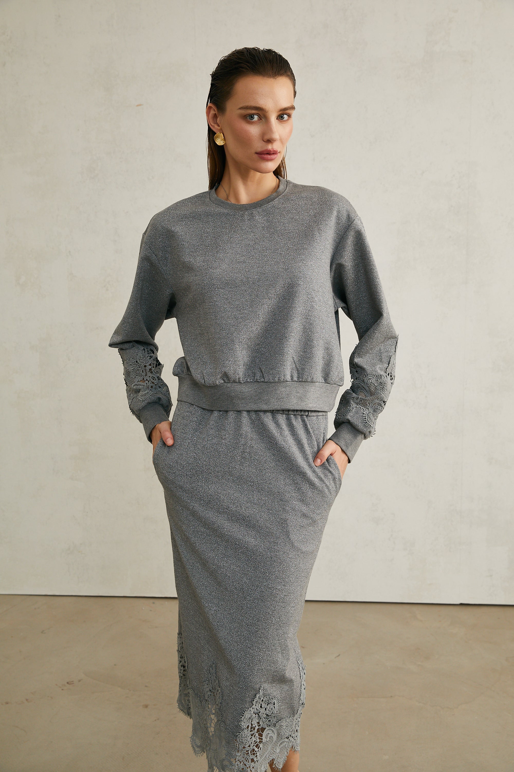 Model 1.78 m boyunda ve M beden giyiyor